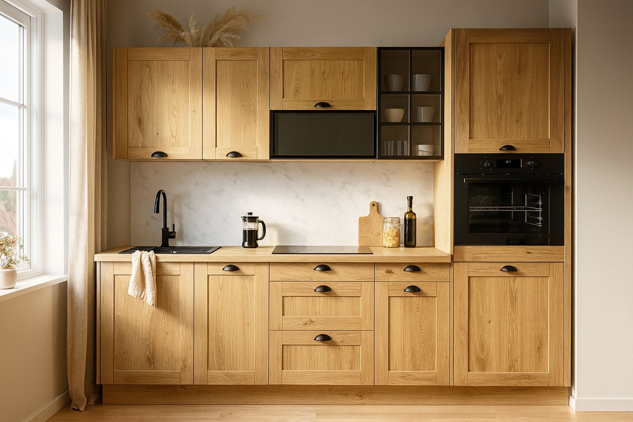 L’indispensable pour une cuisine pré-montée : meubles hauts et meubles bas, façades, fileurs et joues.