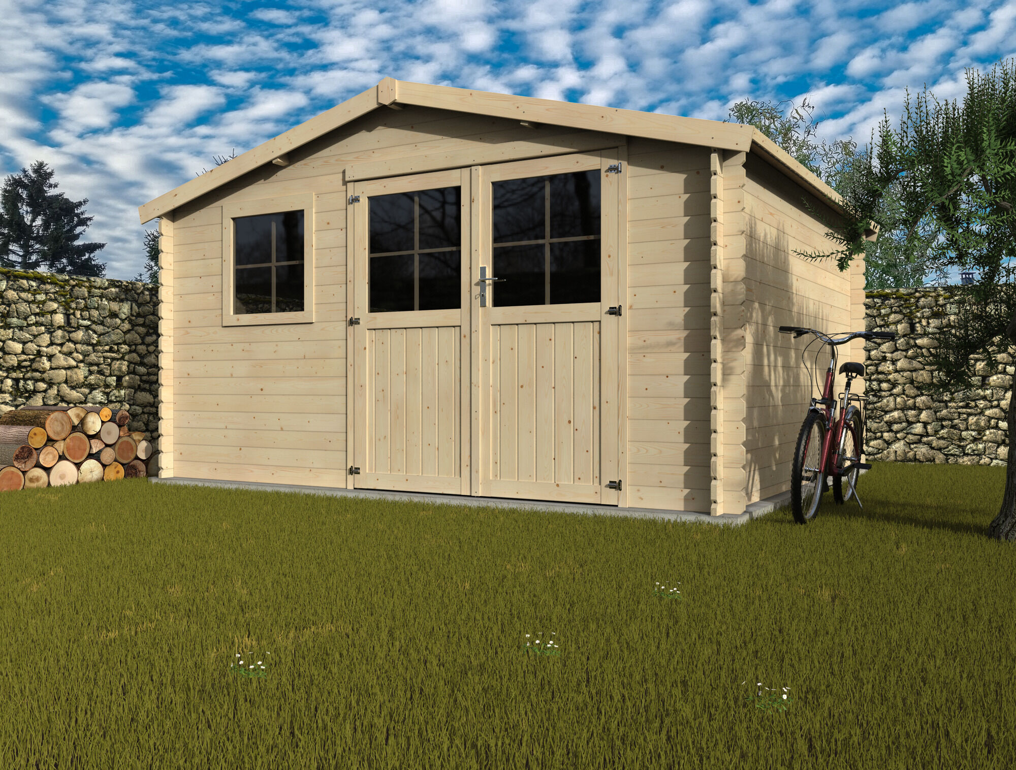 Abri de jardin bois FREVENT - 3,98 x 3,26 m - 12,97 m²