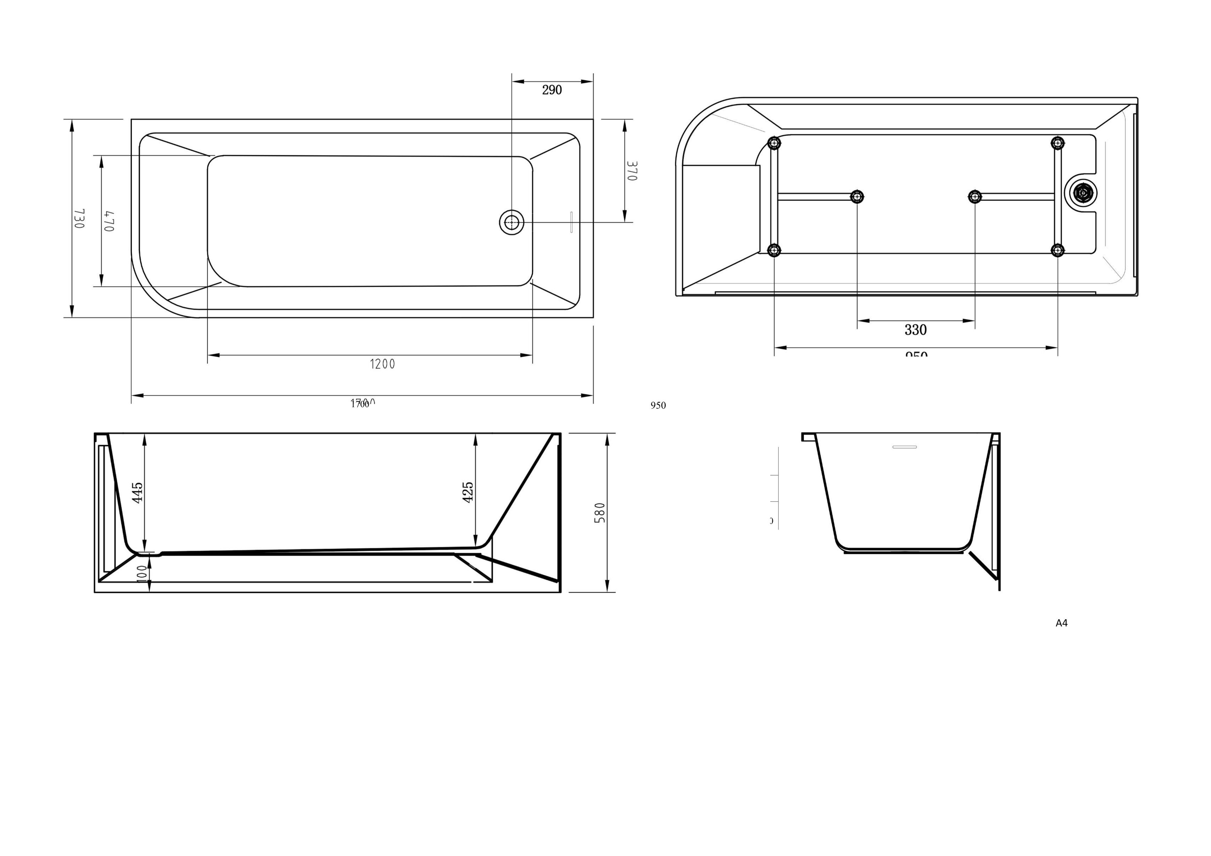 Baignoire d'angle ALTAMIRA droite blanc 266L - 170x73 cm