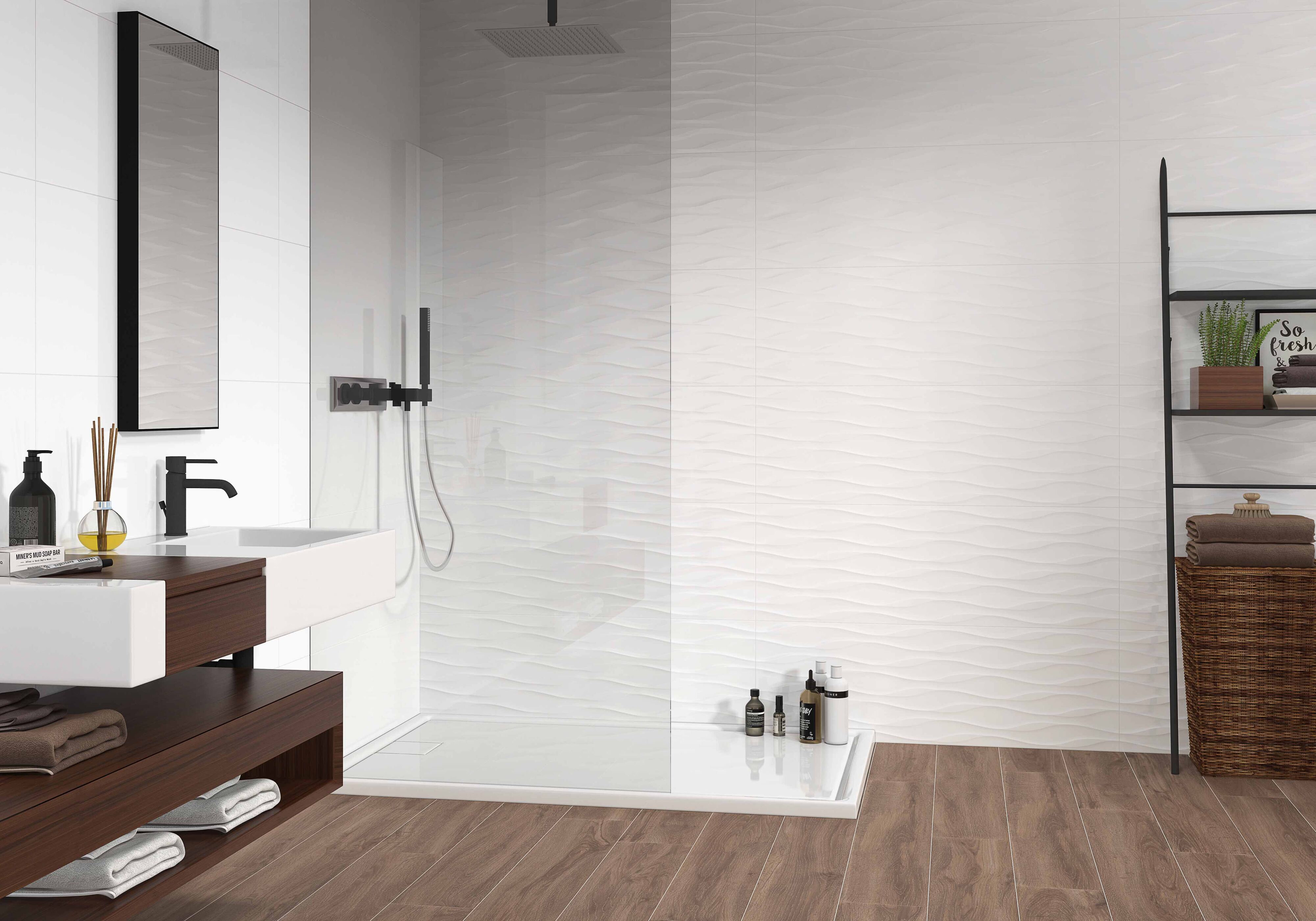 Carrelage mur intérieur BLANCO RELIEF décor - 30 x 90 cm ép.10,5 mm - dunas