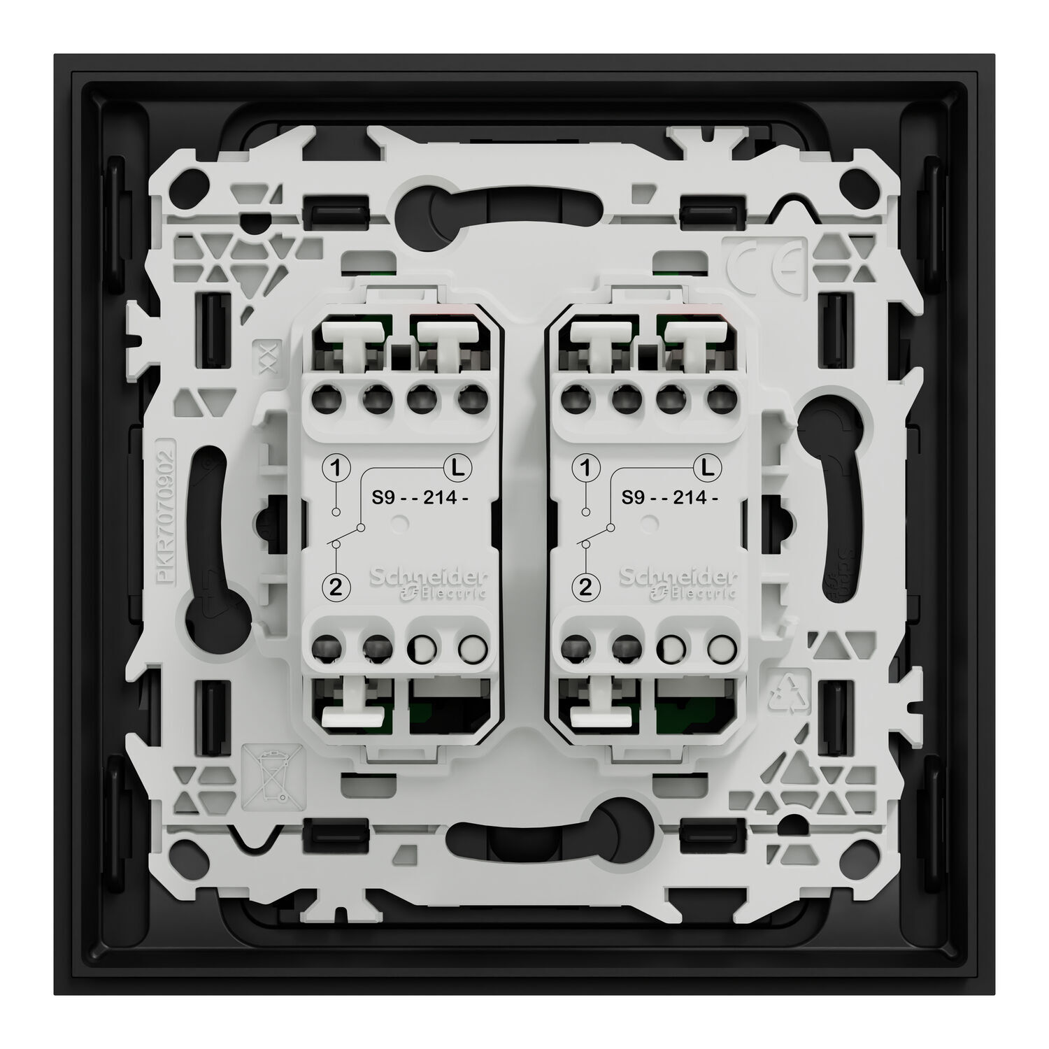 Double interrupteur/poussoir simple avec plaque Intégral Odace - noir onyx