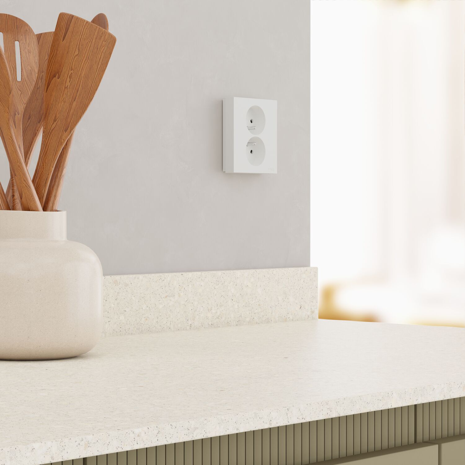 Double prise de courant 2P+T avec plaque Install 1 poste Odace - blanc craie