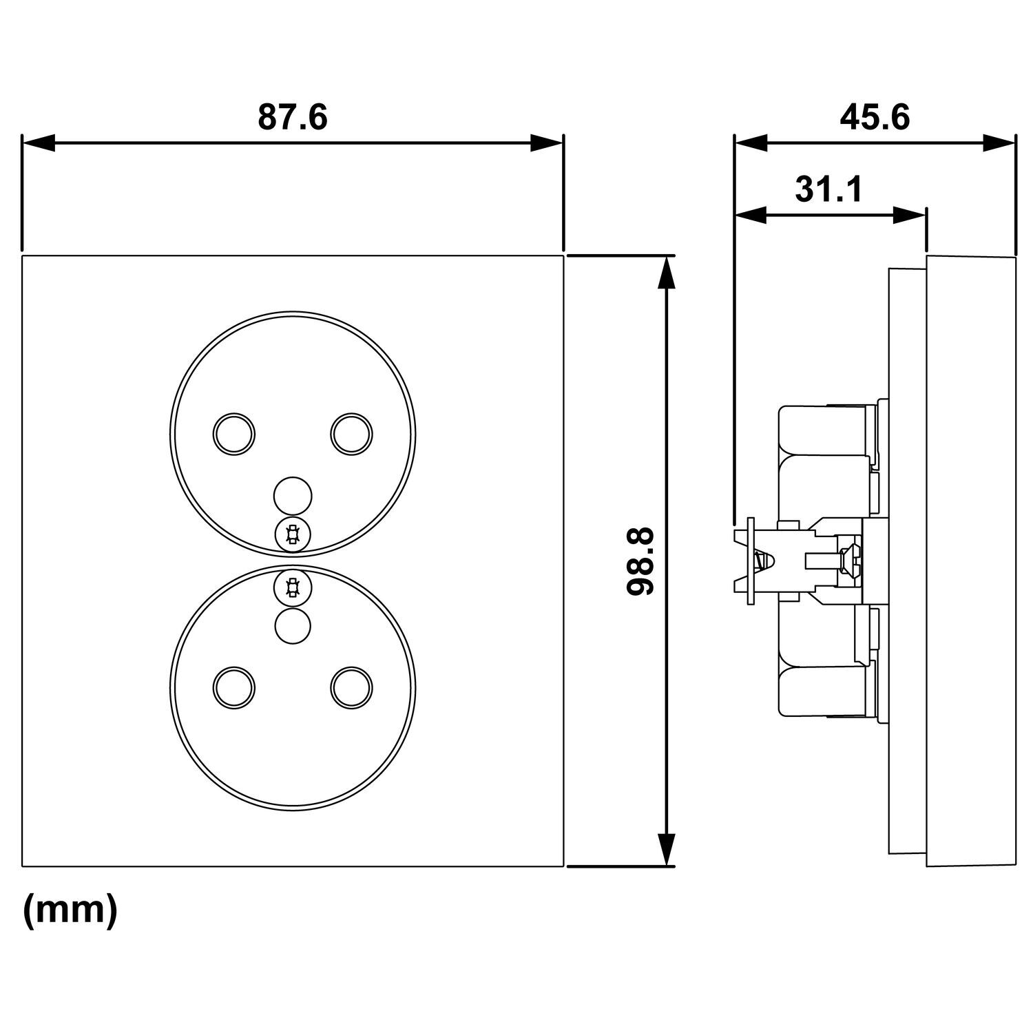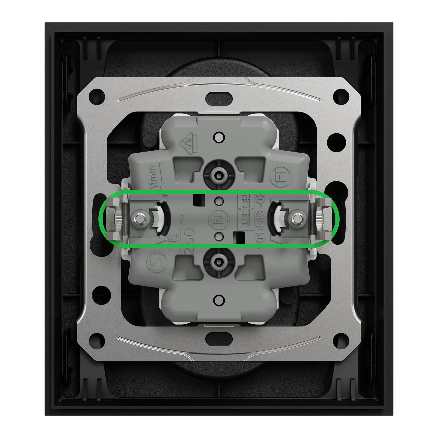 Double prise de courant 2P+T avec plaque Install 1 poste Odace - noir onyx