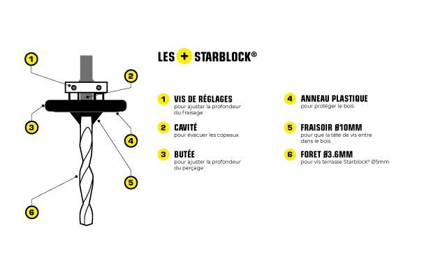 Compatible avec vis terrasse Starblock® Ø5