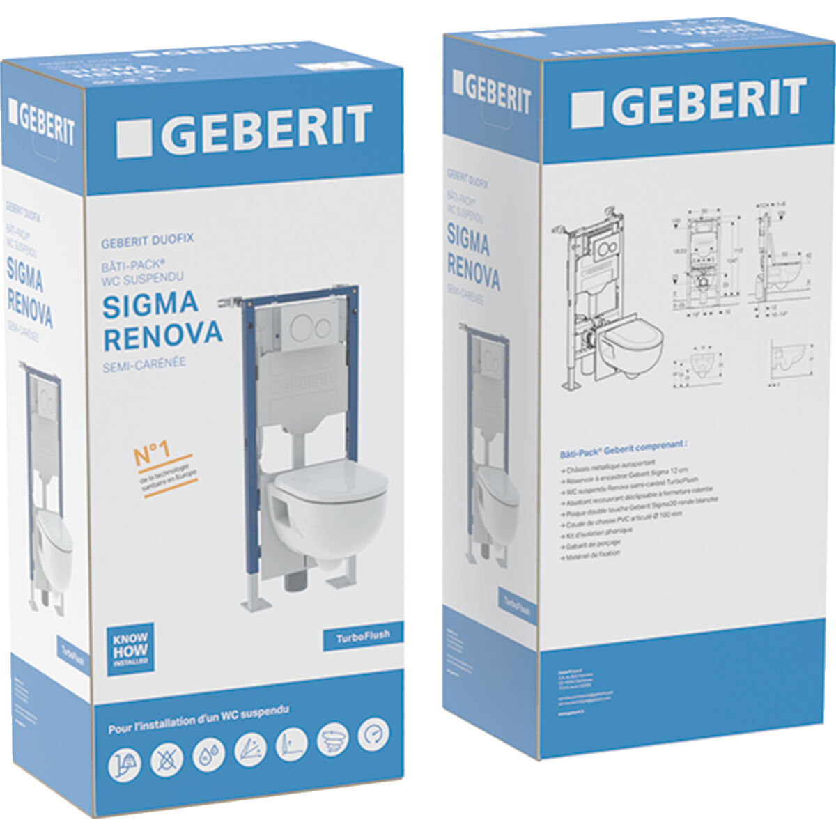 Pack WC bâti-support DUOFIX SIGMA TURBO FLUSH - cuvette RENOVA semi-carénée
