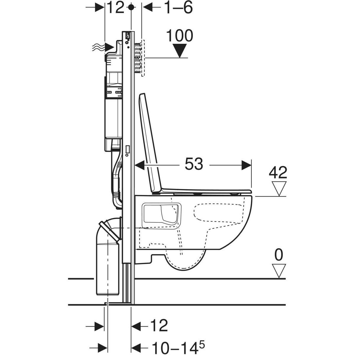 1 bâti Geberit H. 112 x L. 50 x P. 12 cm